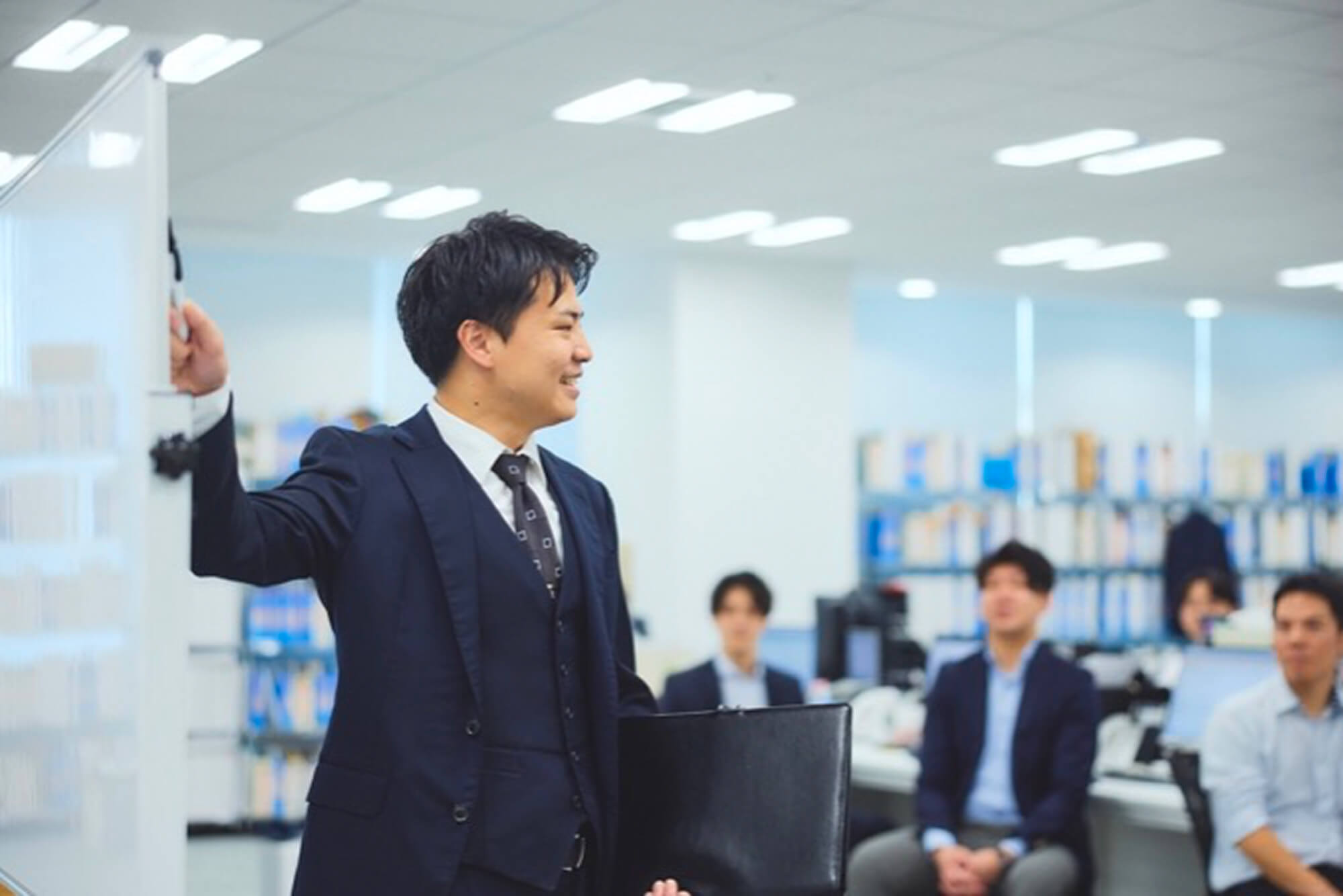 これまで担当してきた中で、印象に残っている後輩がいます。責任感が強く真面目で、誰よりも遅くまで頑張っていたのに、なかなか個人成績が伸びず悩んでいました。ひたむきな努力を見ていたからこそ、なんとか力になりたいと思っていました。彼に伝えたのは、「文章やメールで終わらせるだけじゃなく、一度電話や直接話してみたらどう?」という一言。感情に触れる場面では、より気持ちが伝わる手段を選ぶことが大切だと伝えました。それをきっかけに彼はアプローチを変え、徐々に成果を出すようになったのです。表情も明るくなり、自信を持ってお客様と向き合う姿を見た時は、本当に嬉しかったですね。もともと高いポテンシャルを持っていましたが、今では統括マネージャーを任されるまでになり、「少しのきっかけで人はこんなにも変われるんだ」と実感しました。当社では、新卒はもちろん、中途を含めても8・9割が未経験からのスタートです。それでも、経営者に信頼されるプロフェッショナルへと成長できる環境があります。最初は戸惑っていたメンバーが、自信を持って経営者と対等に渡り合えるほどに逞しく成長していく。そんな変化を支え、見守ることに、大きな意義とやりがいを感じます。